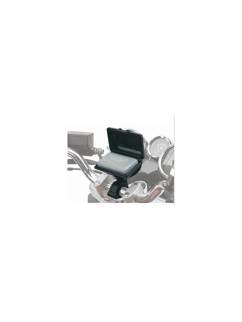 CUSTODIA PER DISPOSITIVI DI PAGAMENTO DEL PEDAGGIO AUTOSTRADALE DEL TIPO "TELEPASS", CON KIT UNIVERSALE PER IL FISSAGGIO SU MANUBRI TUBOLARI.